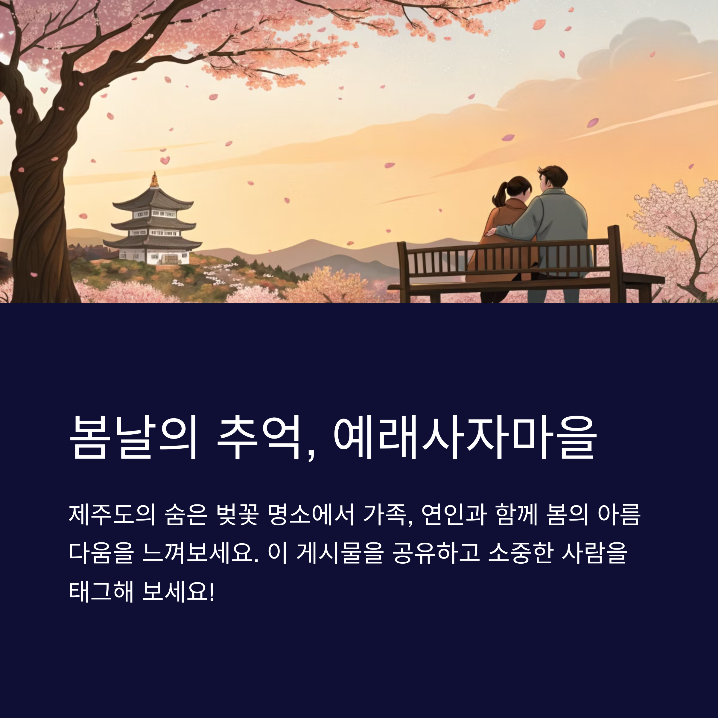 이번 주말, 자연의 품 안에서 봄을 온전히 느끼고 싶다면 예래사자마을로 떠나보세요. 과하지 않은 상업화와 자연스러운 풍경이 어우러져 제주의 진짜 매력을 느낄 수 있는 장소입니다. 벚꽃이 절정을 향해 달려가고 있는 지금, 이번 주부터 다음 주까지가 최고의 타이밍이니 망설이지 마시고 가벼운 옷차림에 카메라 하나 챙겨 떠나보시길 추천드립니다. 평범한 일상 속에서 만나는 특별한 풍경, 그리고 그 풍경을 담는 순간은 분명 오래도록 기억에 남을 소중한 경험이 될 것입니다.