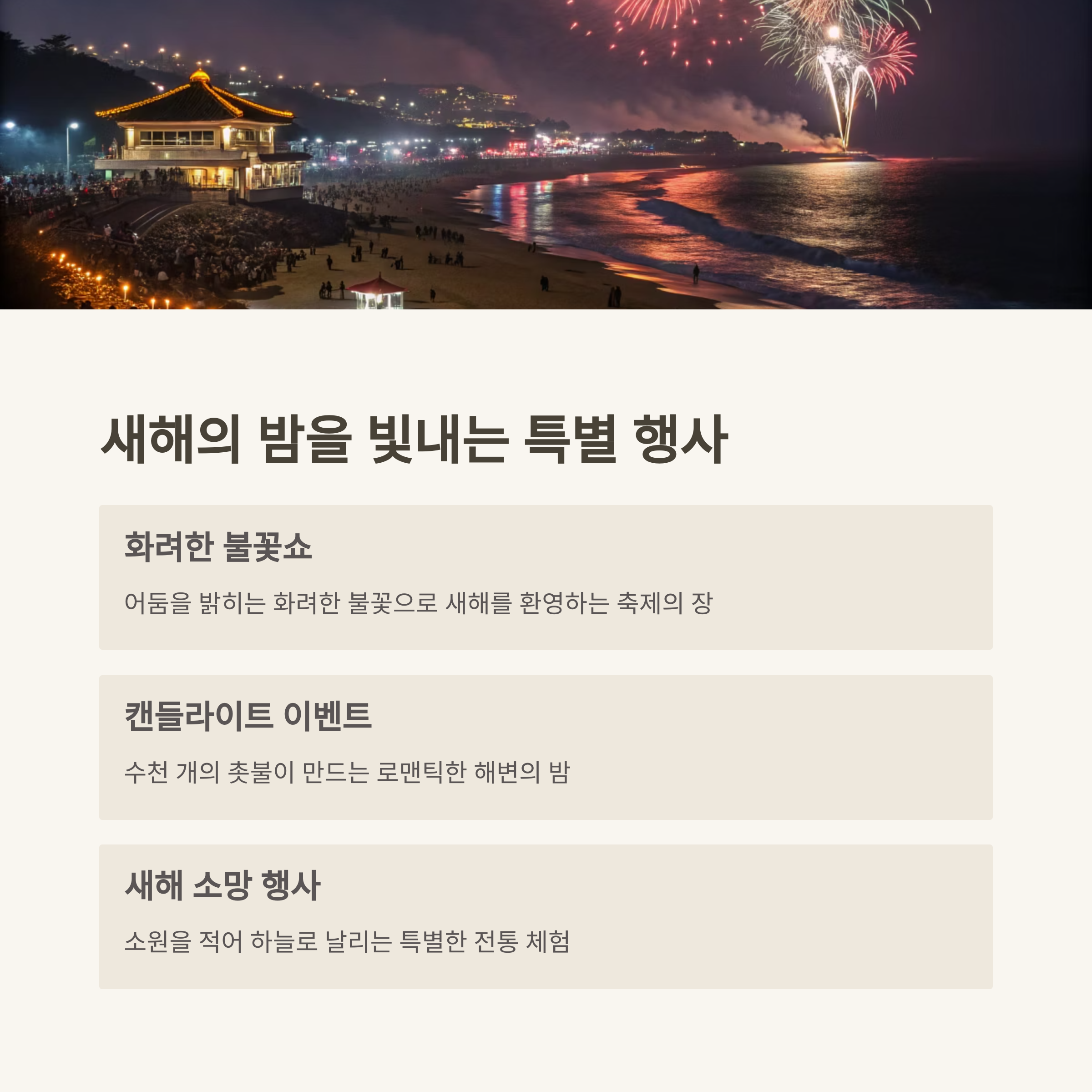 | 해맞이 행사 | 불꽃놀이, 공연 등 새해 맞이 프로그램 |